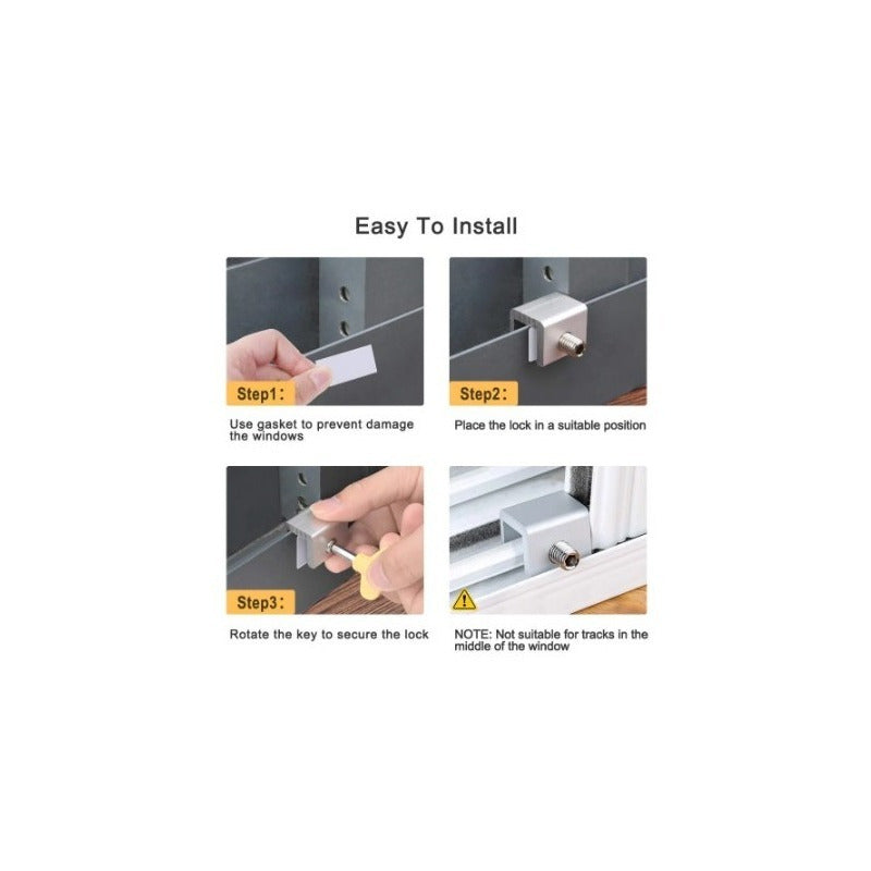 Fácil de instalar: no es necesario instalar herramientas adicionales, está equipado con una llave hexagonal en cada cerradura de ventana, manteniéndose en la pista por control de llave. Material duradero: es fuerte, sólido y resistente, mano de obra exquisita, marco de aleación de aluminio y tornillos de acero inoxidable que se pueden reutilizar muchas veces. Amplio uso: se puede aplicar fácilmente a la mayoría de los entornos; Manteniendo las ventanas parcialmente abiertas y cerradas, la antirrobo y los ladrones pueden evitar que los niños se caigan y proteger la seguridad de sus familias mientras mejoran la circulación del aire. Nota: Se pueden aplicar múltiples cerraduras a puertas o ventanas pesadas para aumentar la seguridad. Que incluye tu compra? 2 seguro para puerta o ventana corrediza con su llave y empacadura.