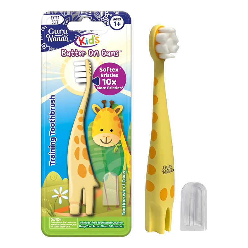 Cerdas súper suaves para un cuidado suave de las encías: transforma la limpieza de los dientes en una aventura suave y agradable para tu niño pequeño con cerdas extra suaves y 10 veces densas. Este cepillo de dientes GuruNanda para niños pequeños con cerdas SoftexTM garantiza una experiencia agradable, perfecto para que los niños comiencen su viaje de cepillado. No solo les enseña la importancia del cepillado suave y completo, sino que también establece los componentes básicos de los hábitos de cuidado bucal de por vida. Haz que el cepillado sea una actividad divertida y sin desorden: con un atractivo y atractivo diseño "Gary the Giraffe", este cepillo de dientes GuruNanda para niños encenderá el entusiasmo de tus hijos por la limpieza diaria de los dientes, fomentando una rutina saludable. La práctica base permite que se mantenga en posición vertical, asegurando un fácil almacenamiento. Además, la tapa del cepillo de dientes protege las cerdas extra suaves, protegiéndolas del polvo y asegurando una higiene óptima. Agarre perfecto para sus pequeñas manos: este cepillo de dientes de silicona para niños fabricado por expertos ofrece un agarre antideslizante y fácil manejo, por lo que es perfecto para manos pequeñas. Su diseño garantiza una sujeción segura mientras los ayudas a cepillar, permitiendo que sus pequeños dedos mantengan un buen agarre durante todo el proceso. RECOMENDADOS DENTISTAS: Las cerdas extra suaves de este cepillo de dientes ayudan a garantizar la eliminación suave pero efectiva de la placa y los restos de alimentos, promoviendo encías y dientes saludables. Además, la superficie suave texturizada en la parte posterior del cabezal del cepillo ayuda a limpiar las mejillas, la boca interna e incluso puede servir como limpiador de lengua. Muy recomendado por dentistas de todo el mundo, este cepillo de dientes proporciona el comienzo perfecto para la rutina de cuidado bucal de su hijo. CERTIFICADO Y CONFIABLE: En GuruNanda, tenemos un fuerte compromiso con la elaboración de productos premium que priorizan la seguridad de sus pequeños y el medio ambiente. Nuestro cepillo de dientes de entrenamiento para niños de GuruNanda está cuidadosamente diseñado para ser no tóxico, libre de BPA, libre de crueldad y sin látex, asegurando una experiencia de cepillado segura y suave para tus hijos mientras promueve un planeta más saludable. ¡El cuidado bucal de tus hijos es la prioridad de GuruNanda!