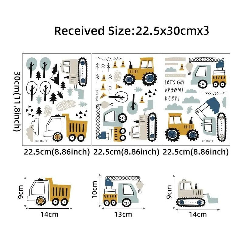 Pegatinas Sticker de pared impermeables de PVC para decoración del hogar, adhesivos de dibujos animados para excavadora, grúa, camión, árbol, habitación de niños, jardín de infantes. Descripción • Material impermeable del PVC :Hecho del material impermeable del PVC, esta etiqueta engomada de la pared es durable y duradero. • Tema de dibujos animados :El Tema de dibujos animados de esta pegatina de pared agrega un toque lúdico a la habitación de cualquier niño o decoración del hogar. • Paquete de tres piezas :Esta Etiqueta de pared viene en un paquete de tres piezas, por lo que es fácil de instalar y personalizar de acuerdo a sus preferencias. • Estilo moderno :Con un estilo moderno, esta etiqueta de pared complementa la decoración contemporánea del hogar y agrega un toque único a cualquier habitación. Despacho inmediato.
