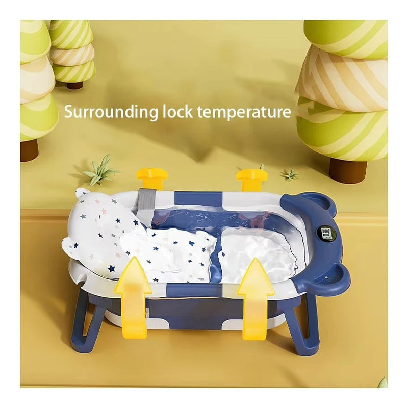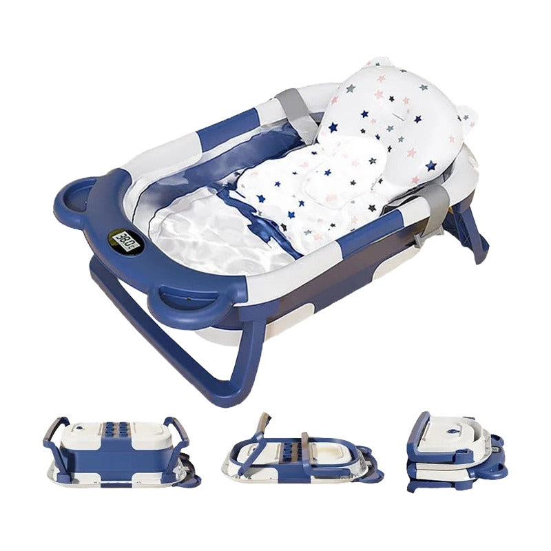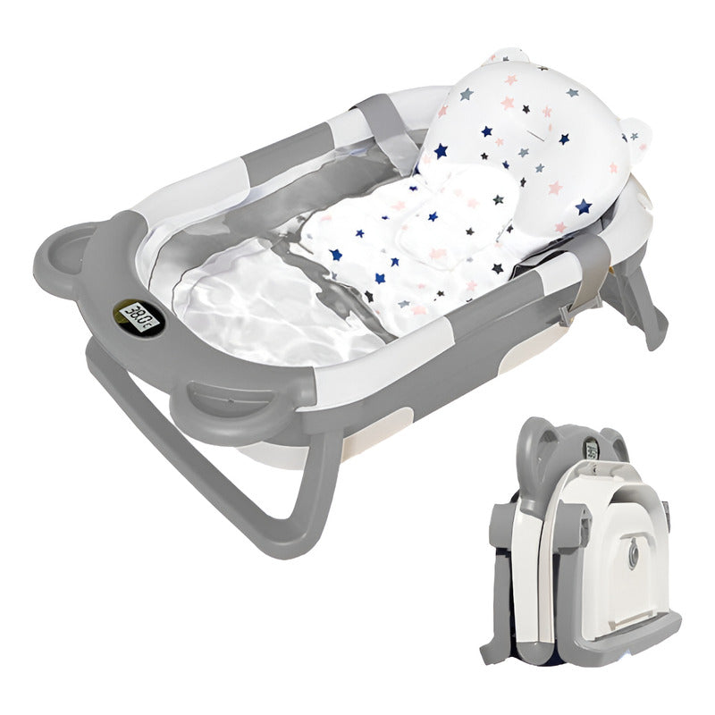 Tina Bañera Plegable Bebe Con Desague Termometro Y Cojin