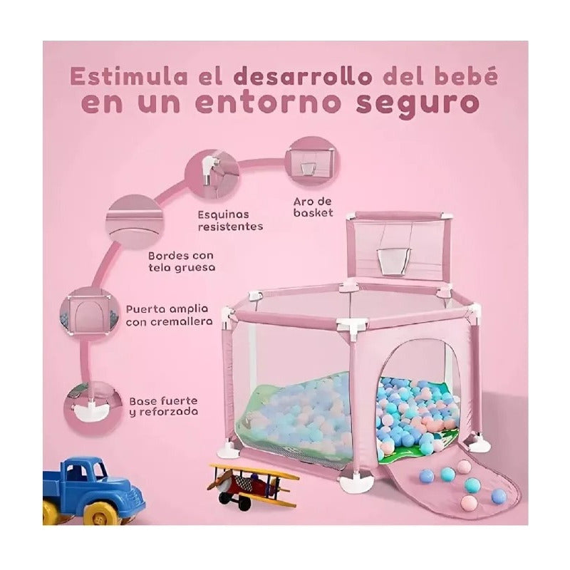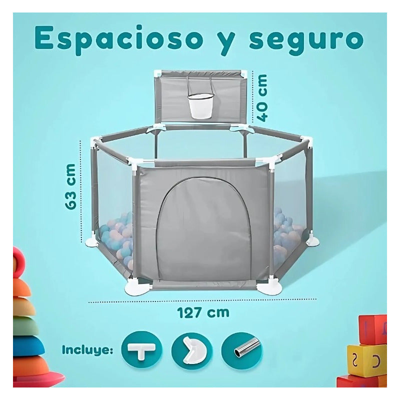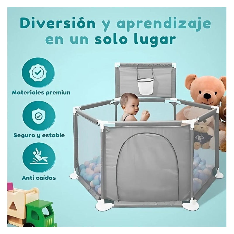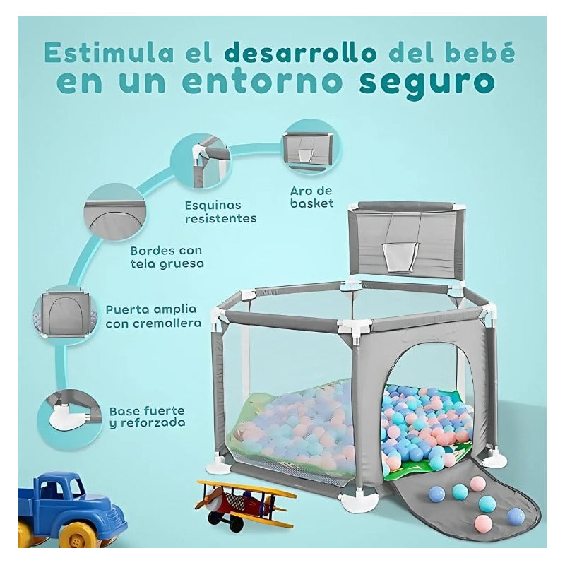 El Corral Corralito Juego Bebé Niños con Mat Alfombra Piscina de Fragola Kids es el espacio ideal para que los pequeños exploren y se diviertan de manera segura. Diseñado como un centro de actividades multifuncional, este corralito permite a los niños disfrutar de juegos, actividades recreativas y momentos de descanso en un entorno protegido. Con un diseño pensado para la seguridad y el control, este corralito se adapta a las necesidades de los más pequeños, desde los 3 meses hasta los 12 años. La base desmontable otorga flexibilidad, permitiendo su fácil transporte y adecuación en cualquier espacio del hogar. El Mat Alfombra Piscina proporciona un área cómoda y amena para jugar, mientras que su diseño atractivo fomenta la estimulación sensorial y motriz. Con un enfoque en el desarrollo infantil, este producto se convierte en un aliado para padres y cuidadores que buscan enriquecer la experiencia de juego y aprendizaje de los niños. Opta por el Corral Corralito de Fragola Kids y transforma el tiempo de juego en momentos inolvidables, donde la diversión y la seguridad van de la mano. Diseñado para ser un acompañante en las etapas iniciales de desarrollo, este corralito es la opción perfecta para crear un entorno de juegos enriquecedor y seguro. Que incluye tu compra? 1 Corral completo 1 Mat alfombra