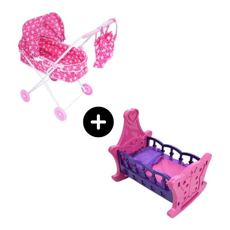 Set Coche Para Muñeca + Cuna Juguete Moises Niña Combo